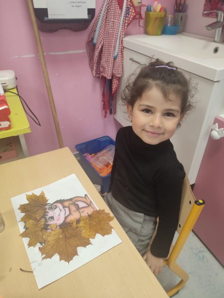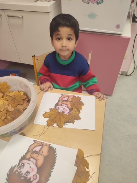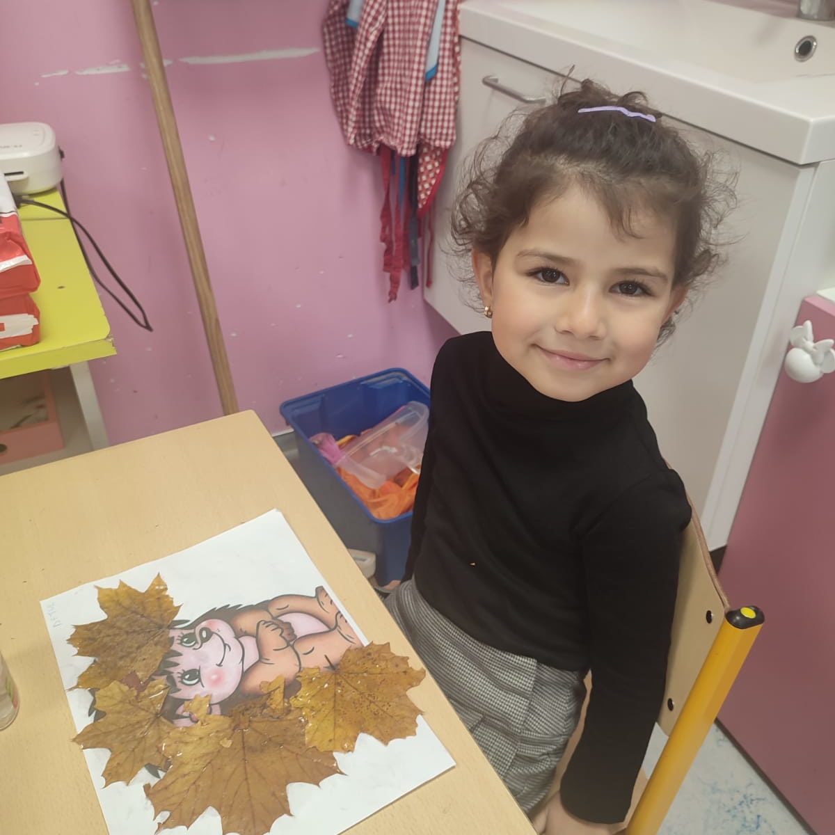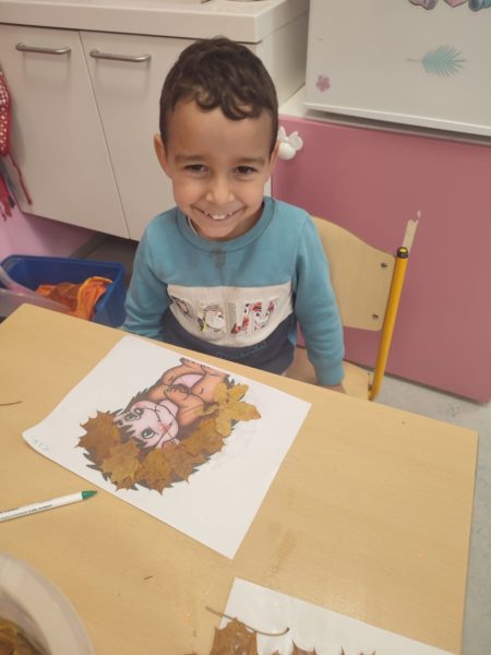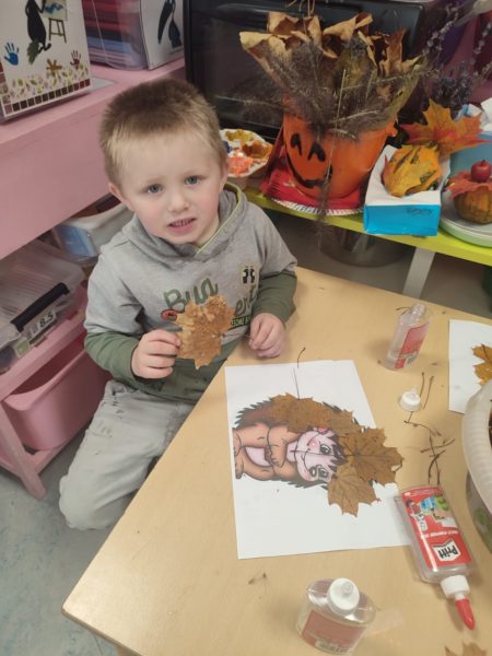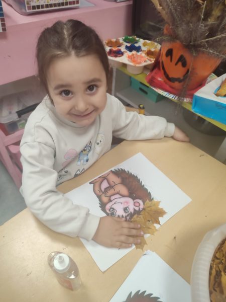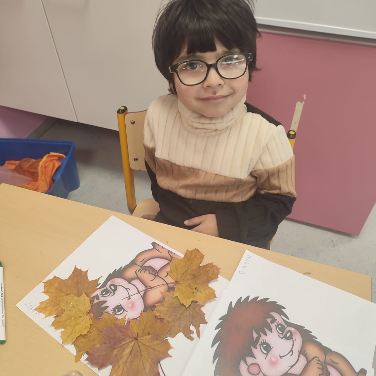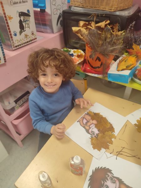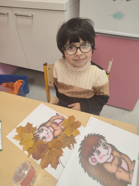 À partir des jolies feuilles ramassées dans la cour, les élèves ont réalisé un hérisson.