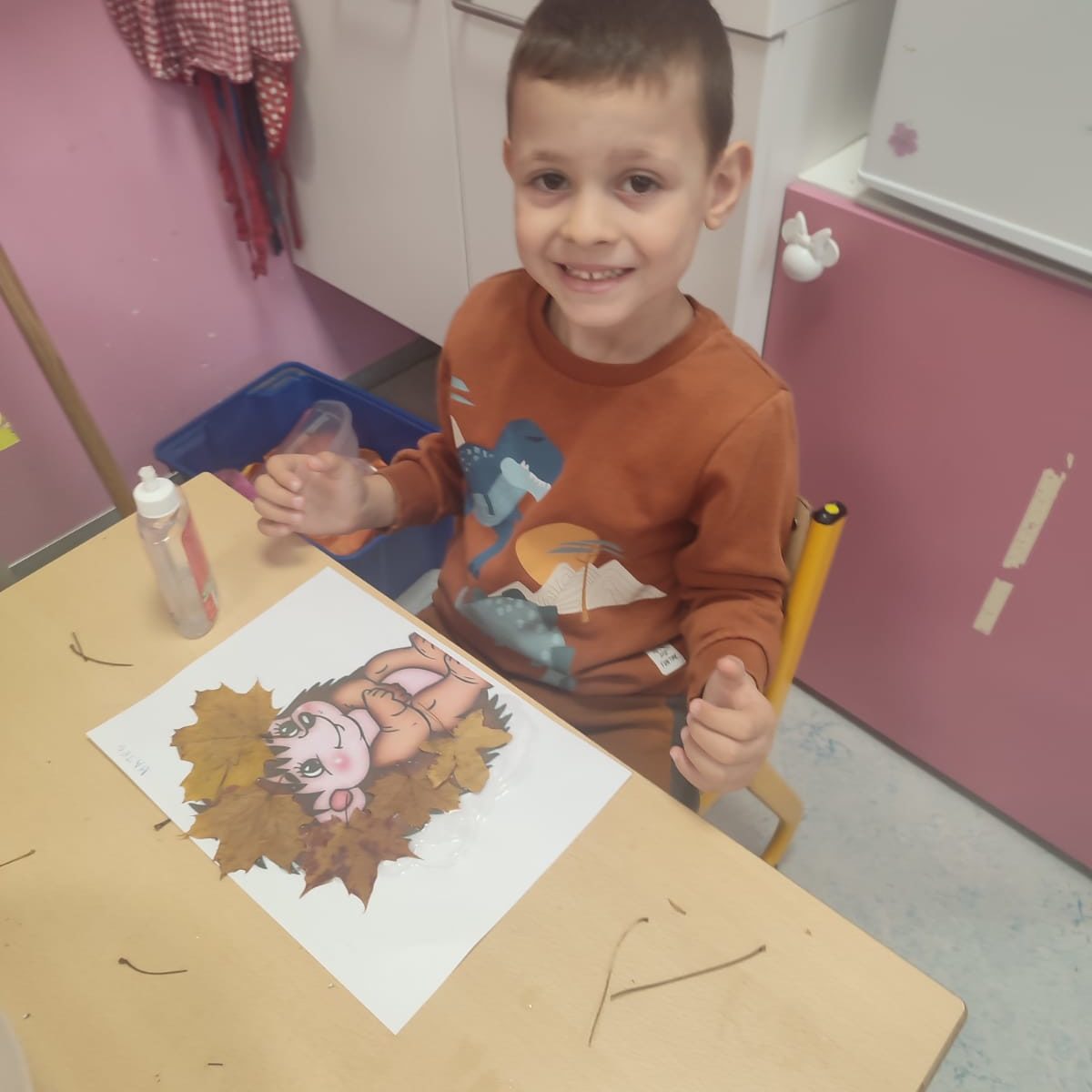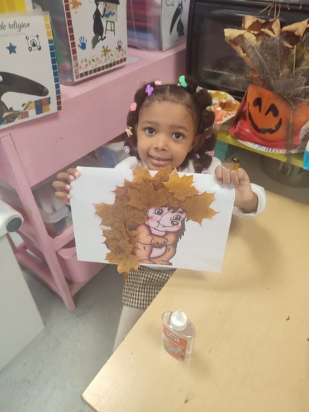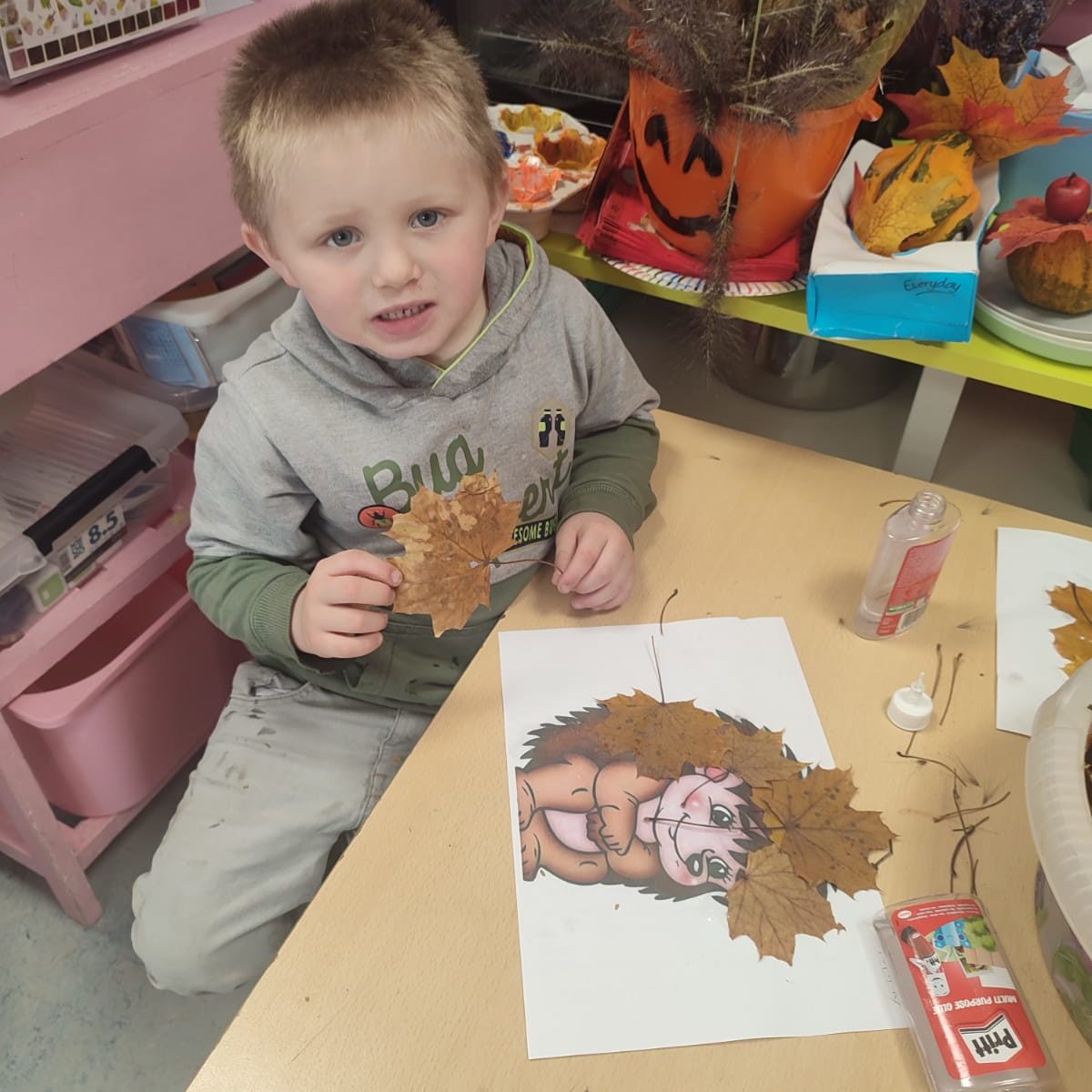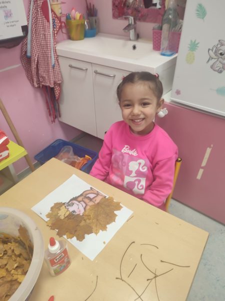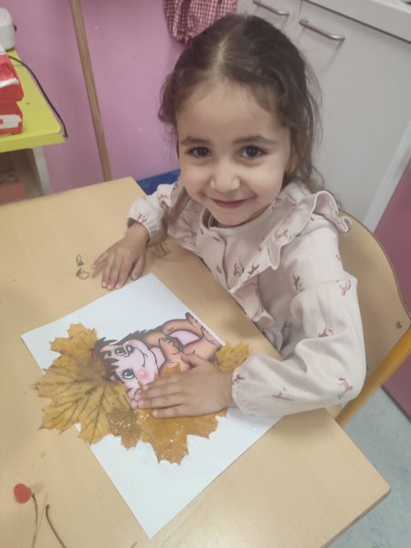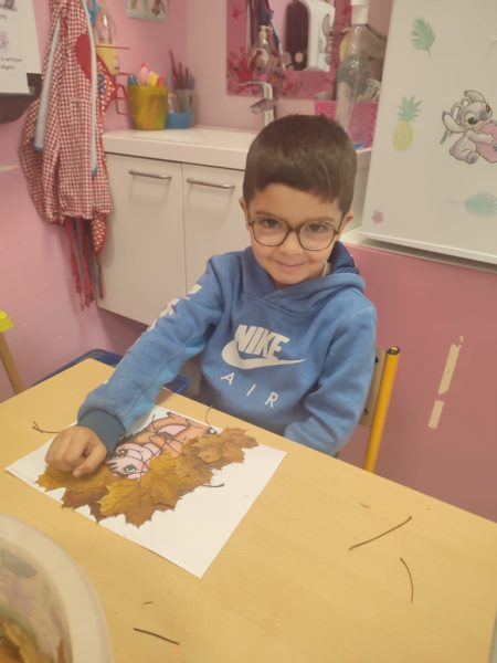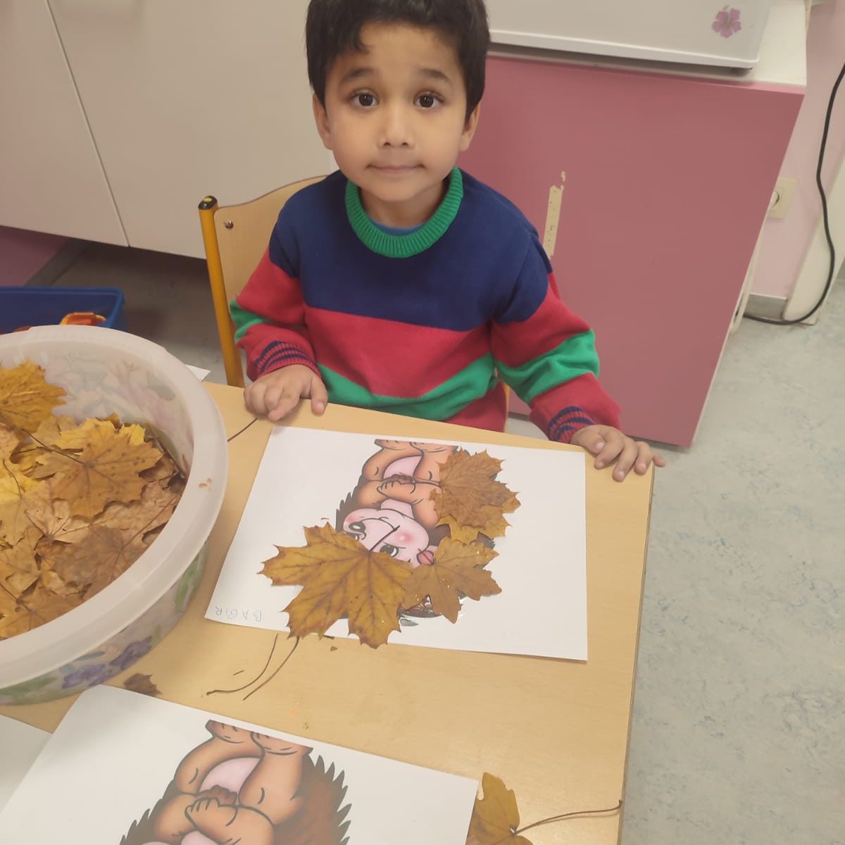 À partir des jolies feuilles ramassées dans la cour, les élèves ont réalisé un hérisson.
