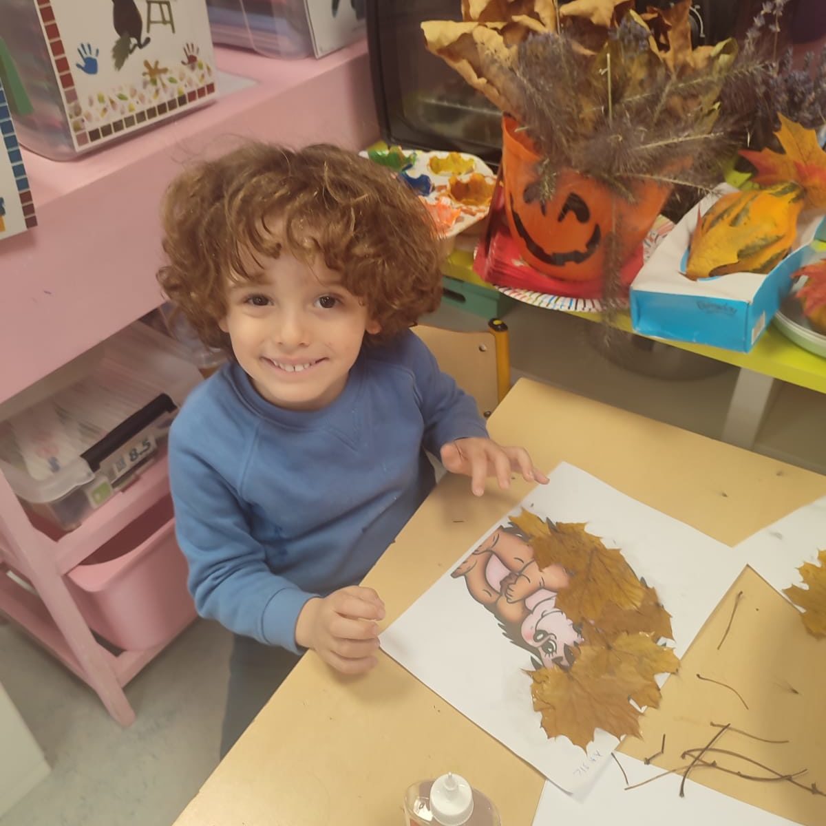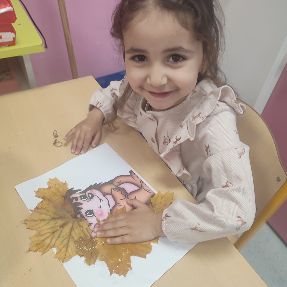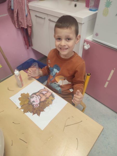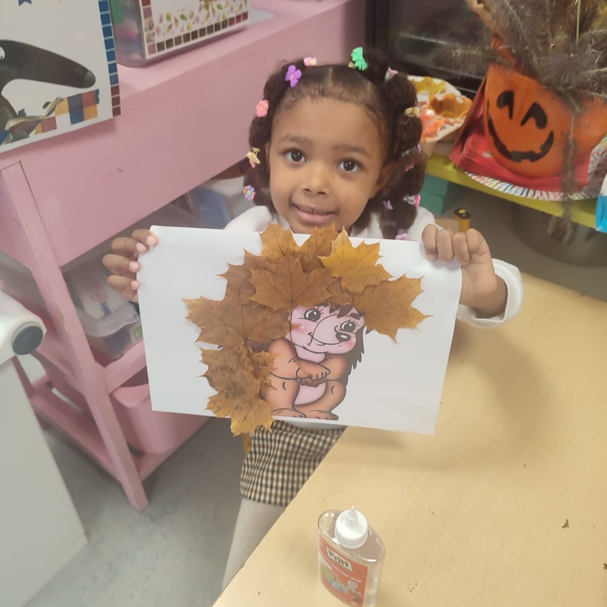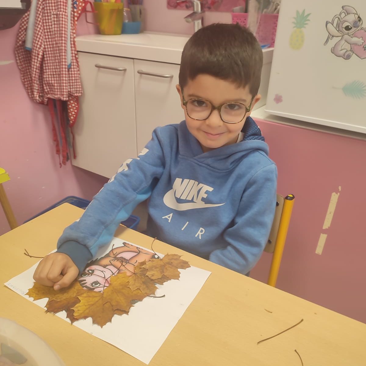 À partir des jolies feuilles ramassées dans la cour, les élèves ont réalisé un hérisson.
