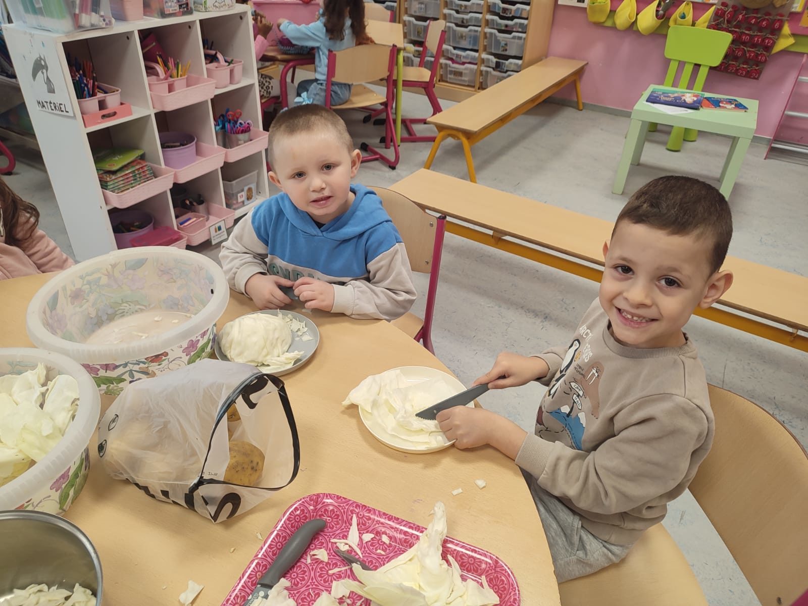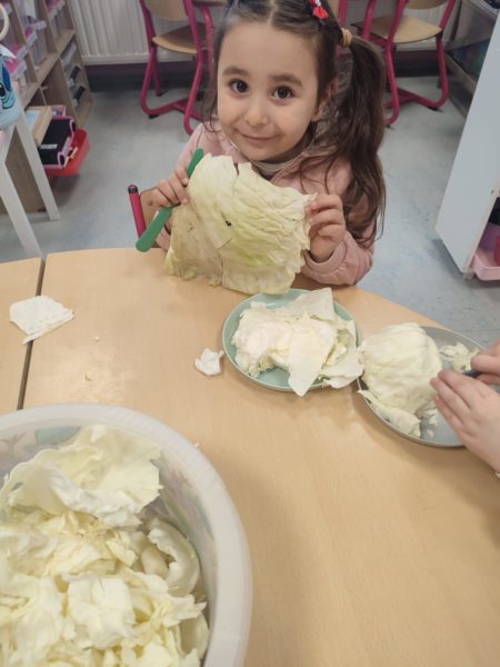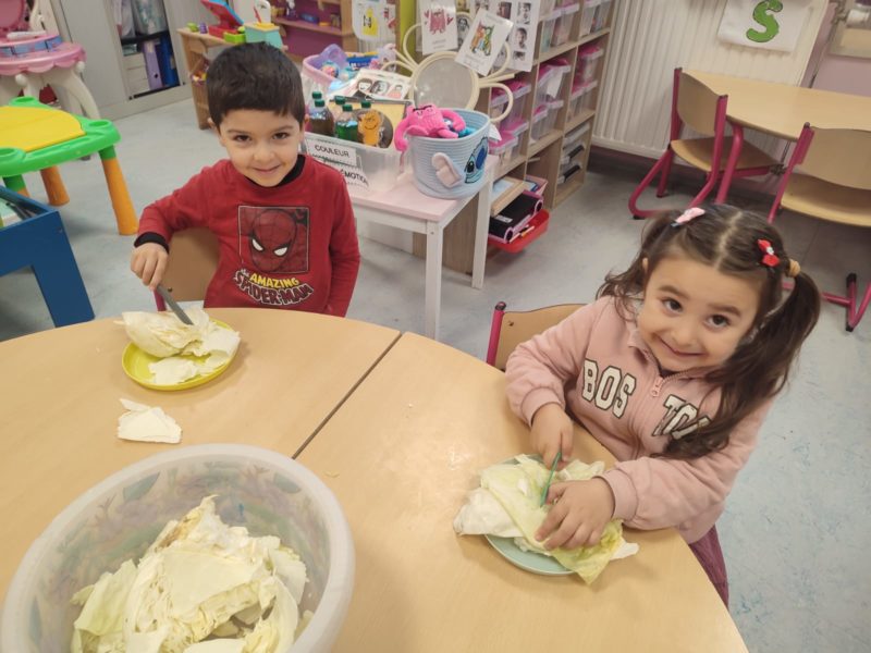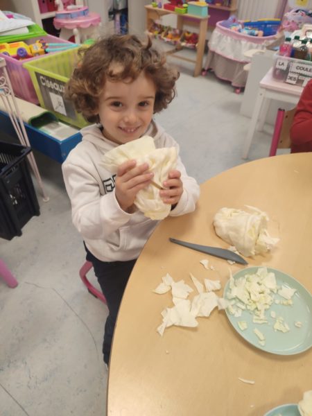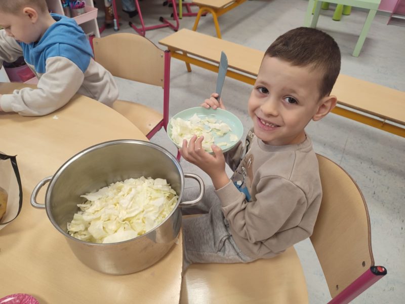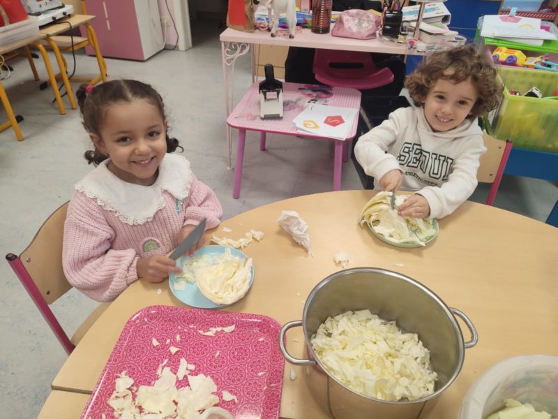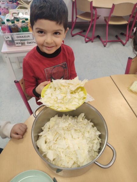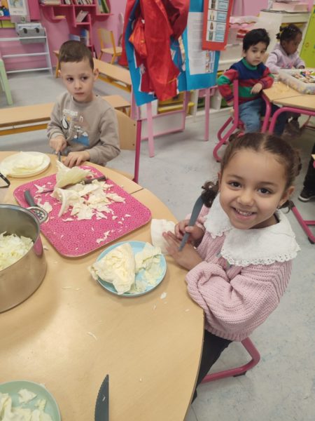 Madame Carine et les élèves de M2 ont cuisiné une délicieuse potée au chou. Un vrai moment de partage… et ils se sont régalés !