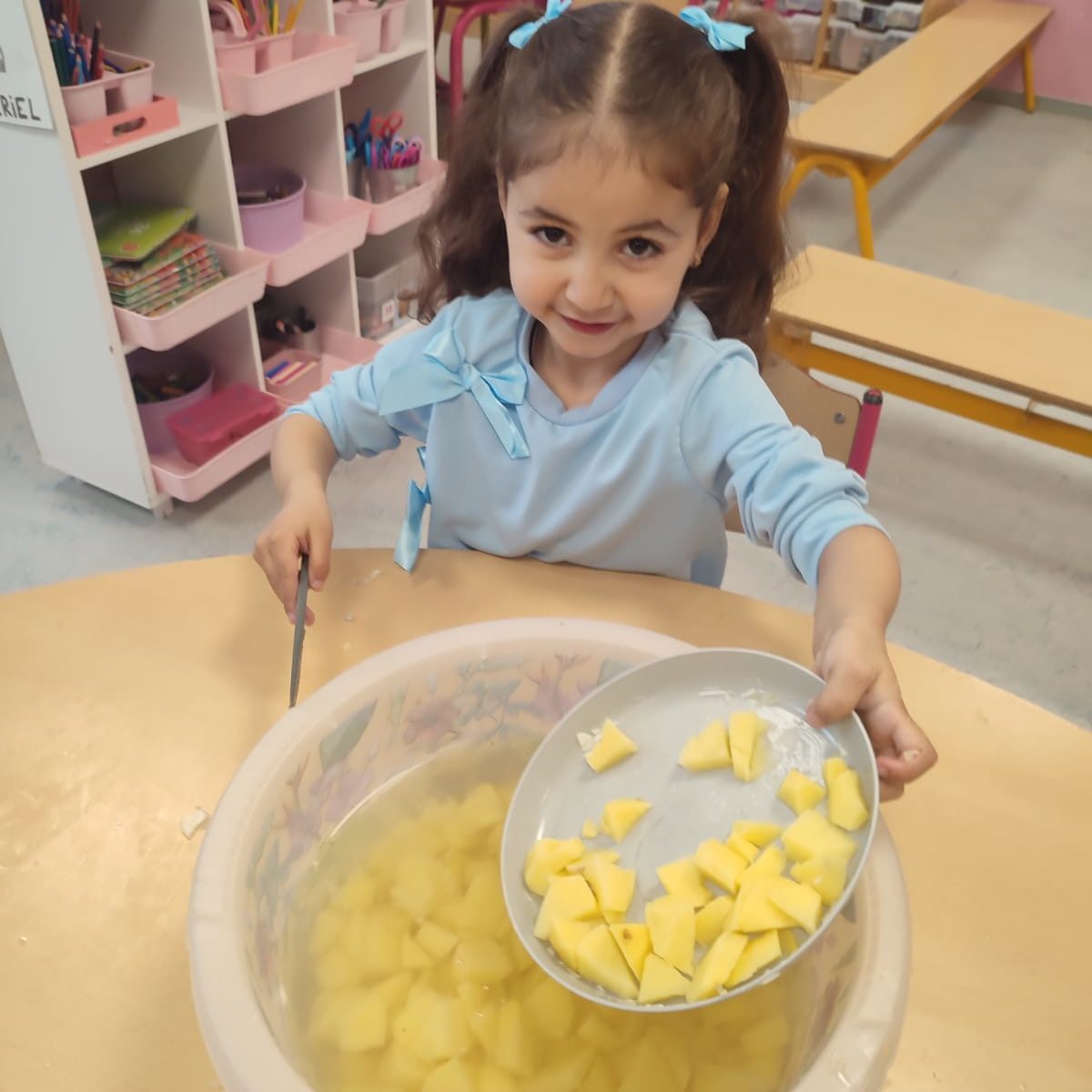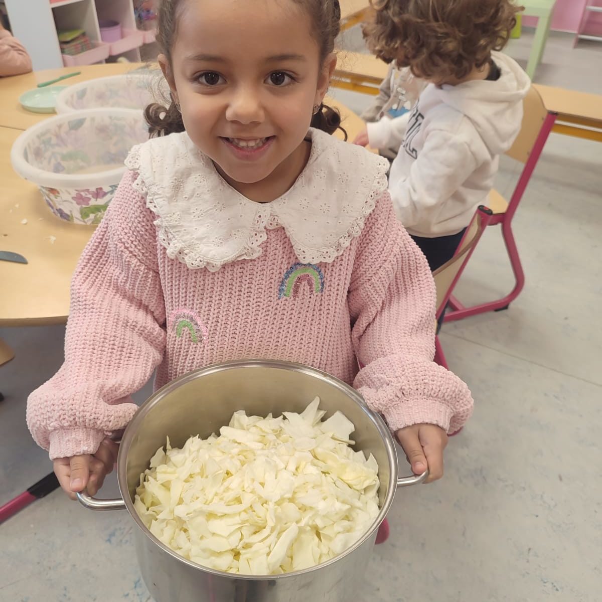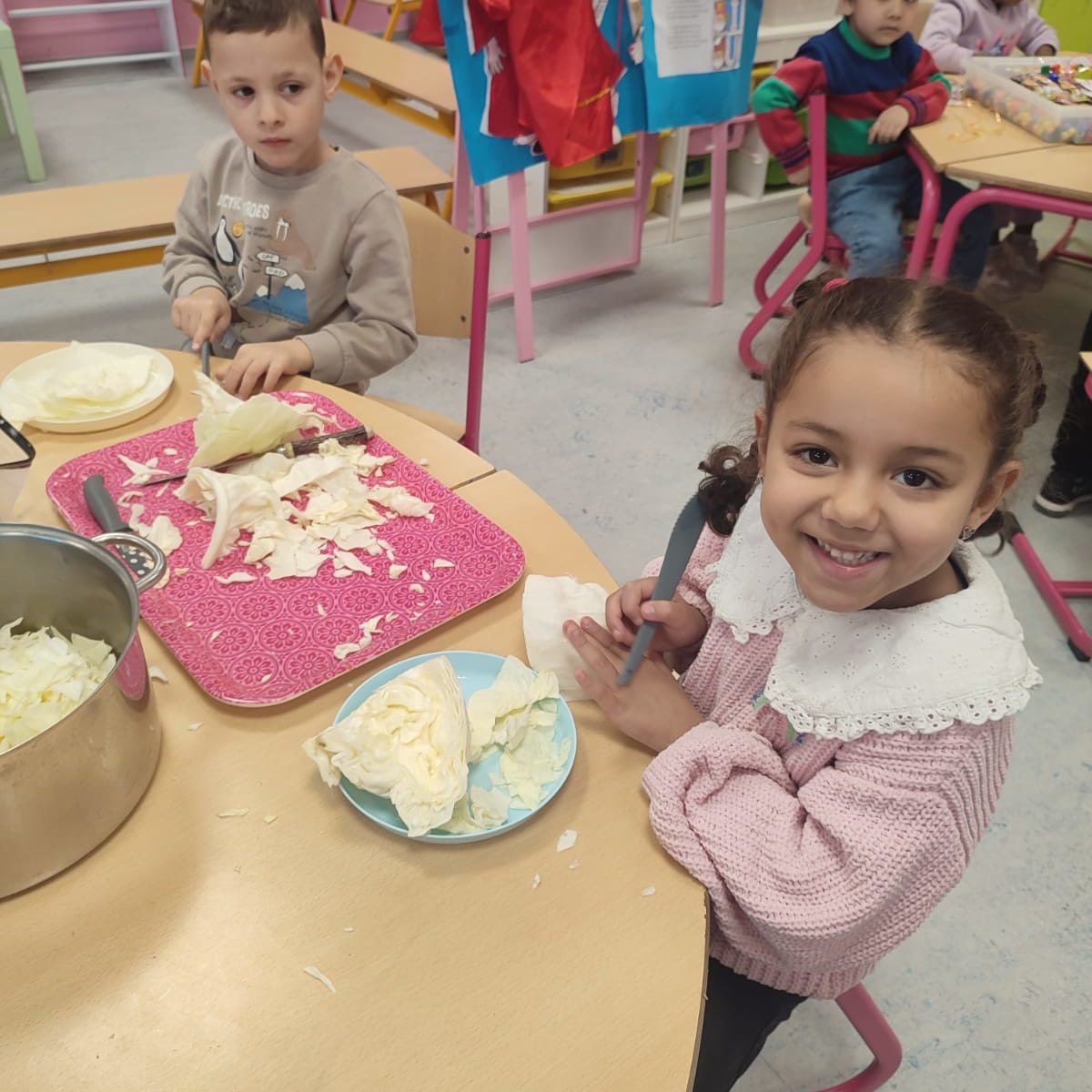 Madame Carine et les élèves de M2 ont cuisiné une délicieuse potée au chou. Un vrai moment de partage… et ils se sont régalés !