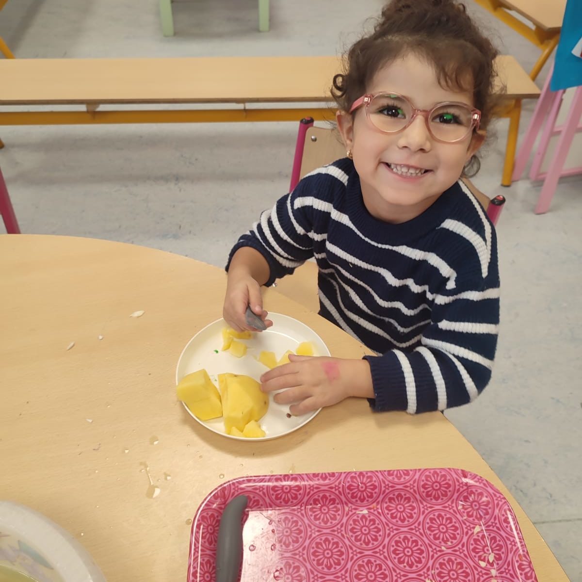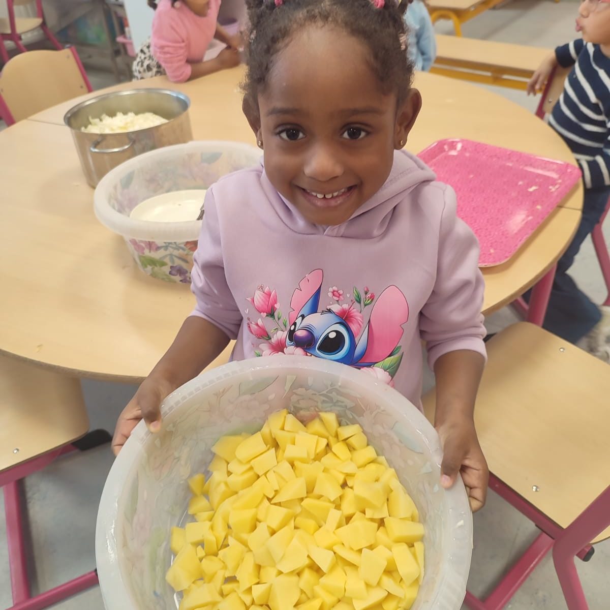Chaque semaine, notre école reçoit gratuitement des fruits de saison à distribuer aux élèves. Et, de temps en temps, quelques légumes s’invitent à la fête !