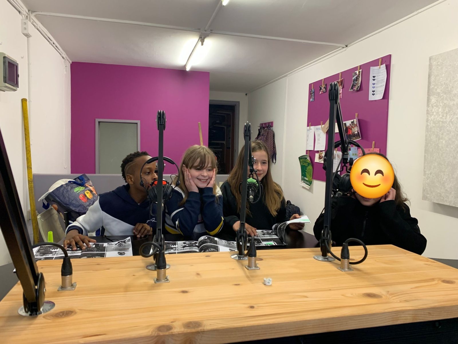 Dans le cadre du projet radio, les élèves de P5-P6 se sont entraînés à lire des histoires pour enfants en interprétant chacun un personnage et en travaillant leur intonation. Ils ont ensuite eu la chance d’aller enregistrer leur lecture à la radio.