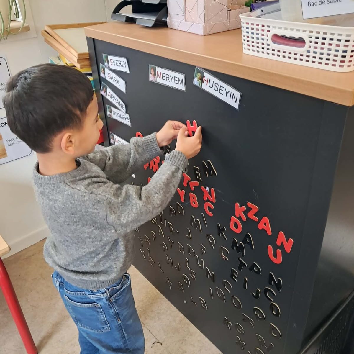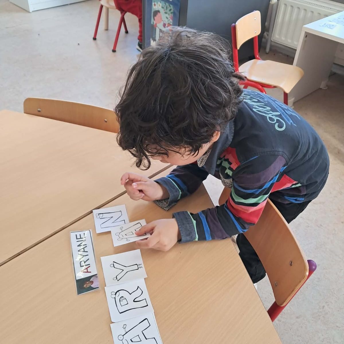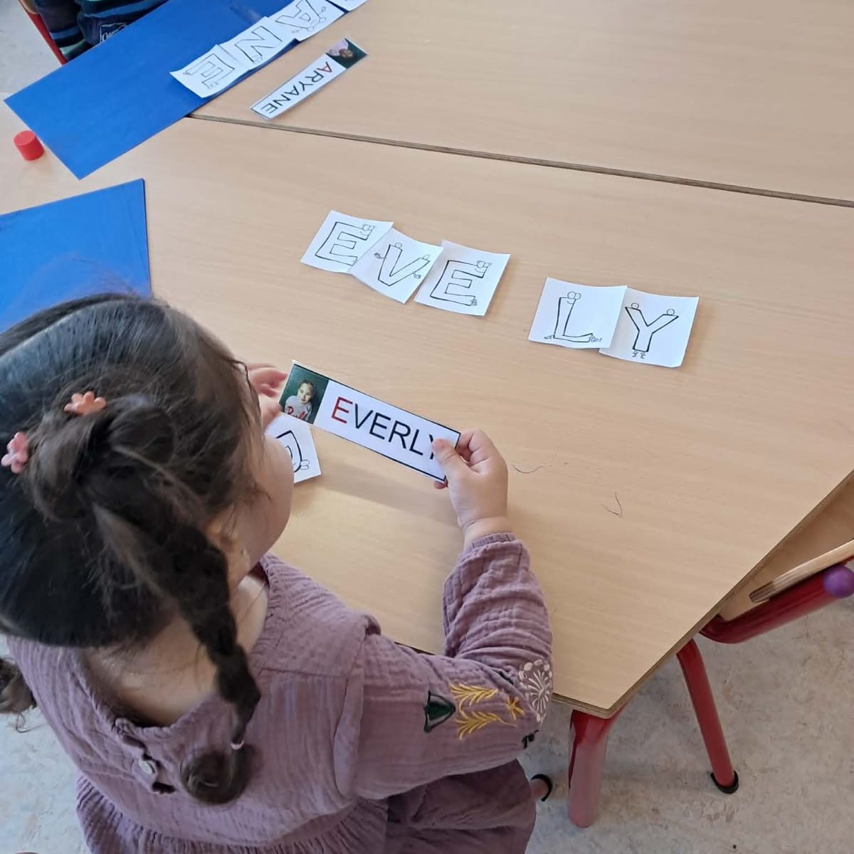 En manipulant des étiquettes, en observant les lettres et en jouant avec les prénoms, les enfants découvrent peu à peu comment identifier le leur.