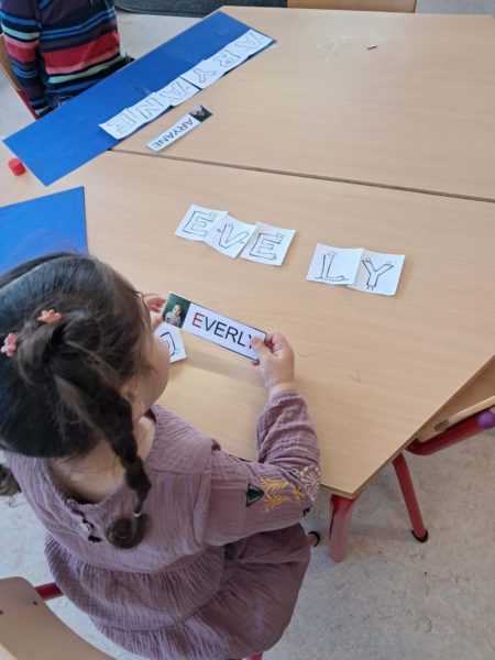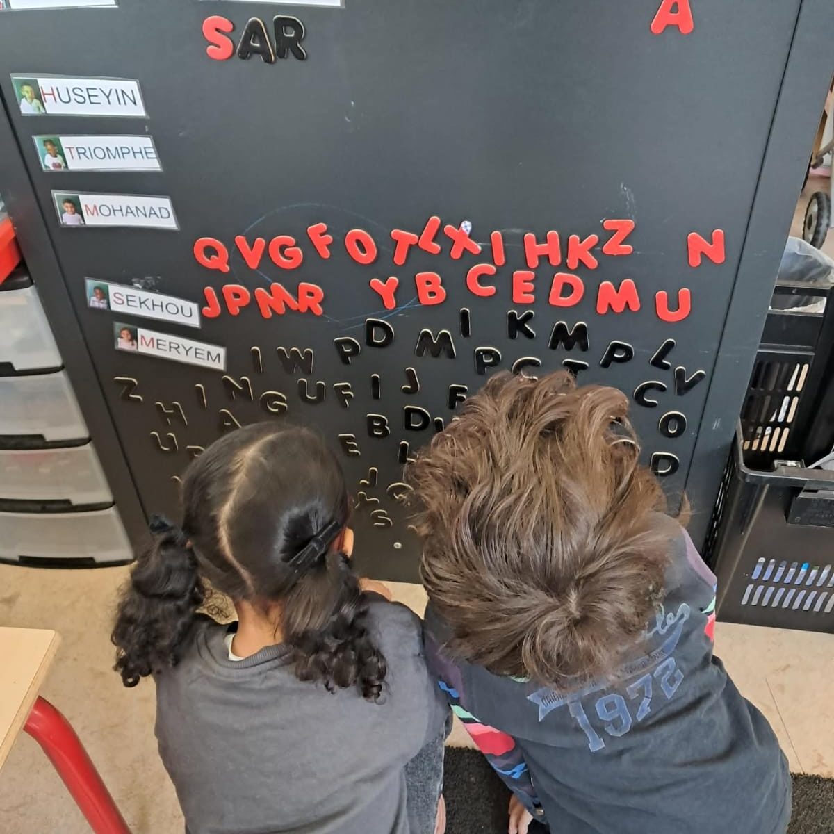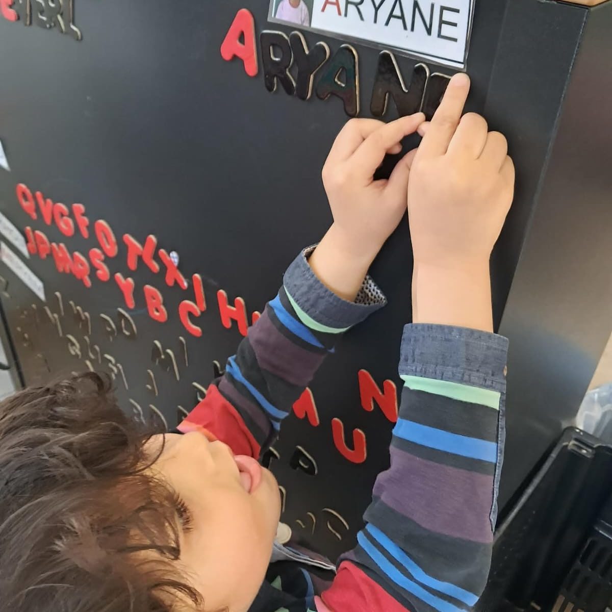 En manipulant des étiquettes, en observant les lettres et en jouant avec les prénoms, les enfants découvrent peu à peu comment identifier le leur.
