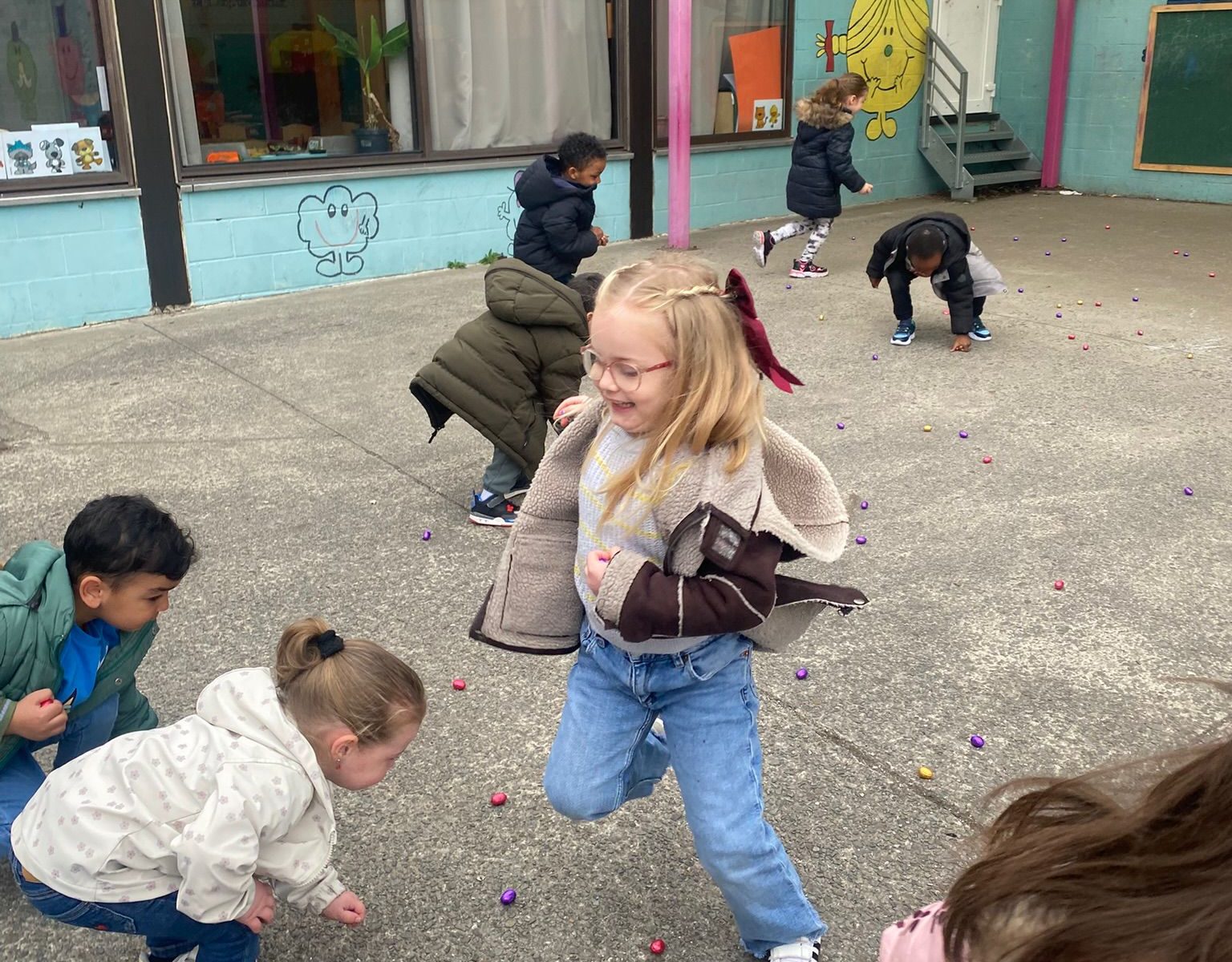 Une chasse aux œufs a été organisée dans la cour de l’école pour les élèves de la classe d’accueil jusqu’à M2.